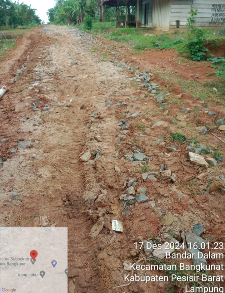 PESISIR BARAT- Pengerasan badan jalan di Pekon Bandar Dalam, Kecamatan Bangkunat membuat mata terbelalak. Ya dana desa yang peruntukannya untuk membangun desa ternyata hanya dibuat untuk mainan semata.