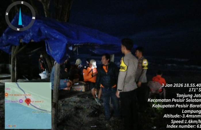 Menindaklanjuti kejadian tersebut, Polsek Pesisir Tengah bersama Tim BPBD Kabupaten Pesisir Barat, dibantu para nelayan setempat, terus melakukan penyisiran di sekitar lokasi kejadian. Upaya pencarian dilakukan dengan menyisir area pantai dan perairan sekitar, sementara situasi di lokasi kejadian terpantau aman dan terkendali.